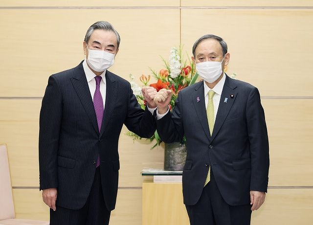 2020年11月25日,中华人民共和国国务委员兼外长王毅对当时的菅义伟首相进行礼节性拜访。来源:日本首相官邸网页