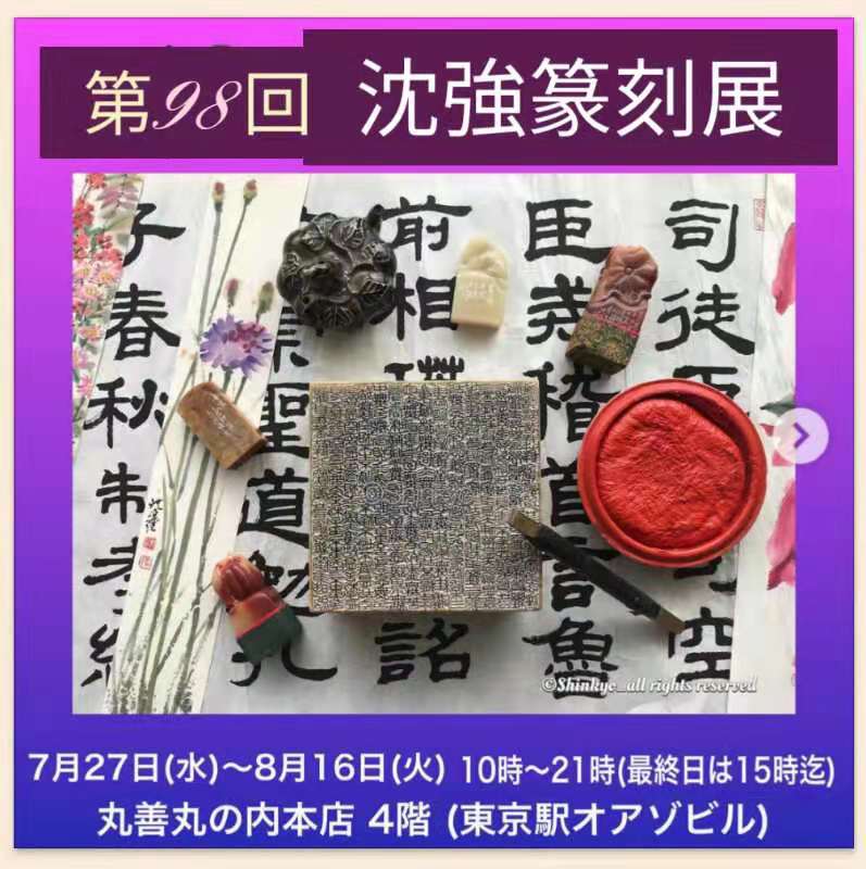 上海出身的在日华人书画篆刻家沈强的篆刻作品展于7月23日~8月16日在东京丸丿内的 丸善本店举行。至此,来日30余年的沈强在日本已举办了97回篆刻个人展览。刻了近3万6千多方印章。