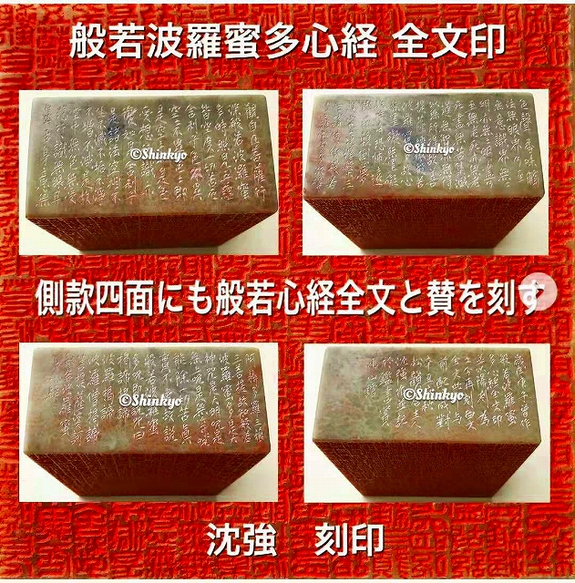 沈強爱刻系列印,这是从最初刻的一套“孙子兵法三十六计”印一炮打响后开始的,当时日本篆刻美术馆收藏了此套系列印。以后的几十年中,刻系列印也成了他一个不断挑战、总结和提炼提高的一个过程。每当完成一大系列印后,他又会思考下一个题材,然后起稿,积累,有时冥思苦索,几乎各体文字充满在脑中,然后求形变化。以至在他的案头放着多部印稿手本,内中有他平时随手记录起草的各式文字印稿,就象画家的速写本,这其中有许多最原始的印稿,最后提炼成就了许多篆刻作品。故几十年中,在他的手中陆续出现了“般若波罗蜜多心经”、“千字文”、“百寿百乐百福百美”系列印、“二十四节气印”、“十二生肖各百印”,“佛像百印系列以及成语吉语警句游印系列等印。除了系列印外,沈強也擅于刻巨印,所谓巨印,即将长文诗词多字句置于一印中,且印材都在5公分以上,如此日积月累,现在已尉々大观,颇具气势规模;近几年,沈強为了走出一条属于自己印风的路,不但在印外求字,又于画中求字,利用自己会绘画的基本功,将字变形,并把图案图形绘画元素溶入印中,书画刻结合,营造出一种与众人不雷同,又有自己特点符号的画中印。当这些印推出后,深受好评,喜爱者多增。平时沈強又会在构思好的文字中,构上许多文字变形草稿,百般推敲,尽量使一方印完整美妙。当印稿完成后,他会将印稿上石搁在一边,待积累了多方后,然后抽空集中时间一气呵成,决不拖泥带水,有时仅仅一天,在他的手下突然就出现了十余方各具形态文字的印。