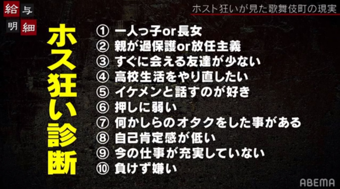 通过两年多夜以继日的努力,成崎终于完成了自己的研究报告,这份报告最终被命名为《光顾歌舞伎町牛郎店的女性,以及在那里上班的牛郎》,其中还列出了10种最容易沉迷牛郎的女性特质。