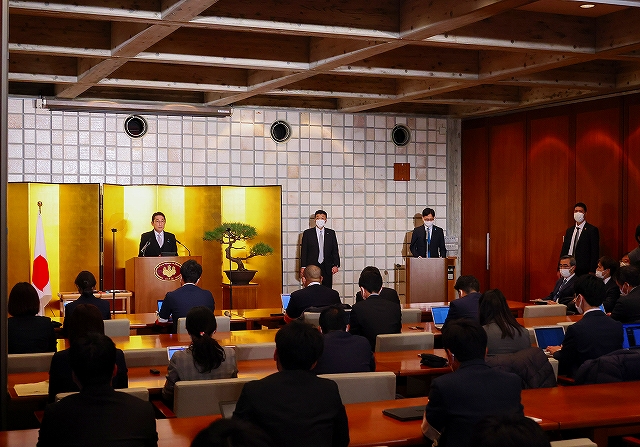 1月4日,日本首相岸田文雄在年初的记者会上。来源:首相官邸网页