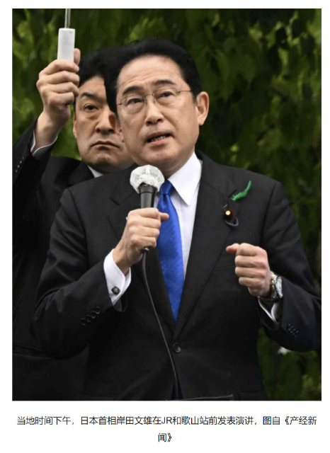 据日本《产经新闻》早些时候报道,自民党消息人士称,在15日位于和歌山市杂贺崎渔港的演讲场地传出爆炸声后,日本首相岸田文雄将更变演讲场地,在JR(日本铁路公司)和歌山站前进行了当天的演讲。