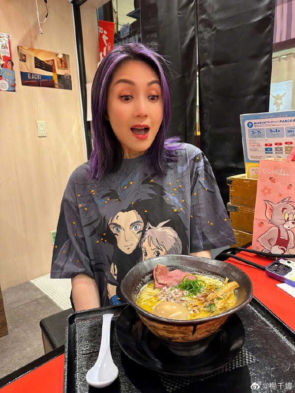 文章来源于互联网:杨千嬅玩转日本:啖拉面撸烤串,多图传微博,与歌迷齐分享