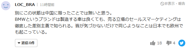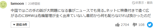 在中国,新闻上能看到这种话题会成为大问题。网络上有影像,马上能传播开来,宝马却完全没有危机管理。从一开始什么都不发就好了