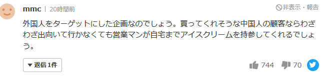 是以外国人为目标的企划吧。如果是要买的中国客人的话,即使不特意去,营业员也会送冰淇淋到家吧。