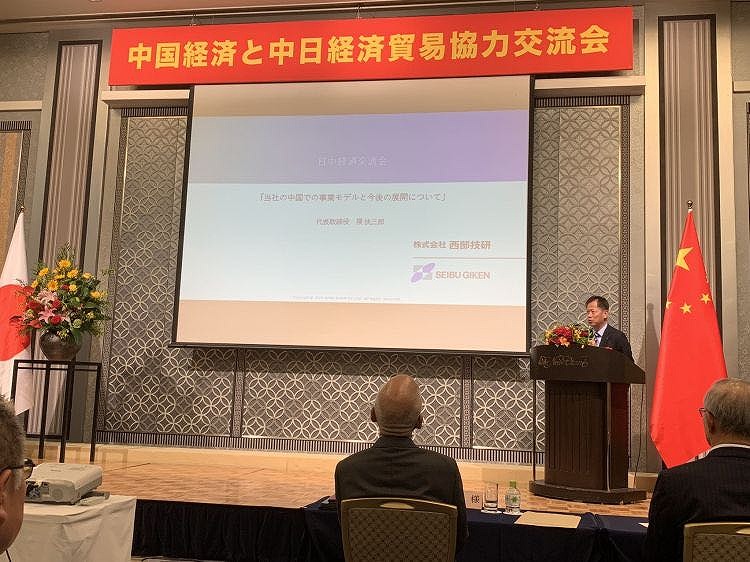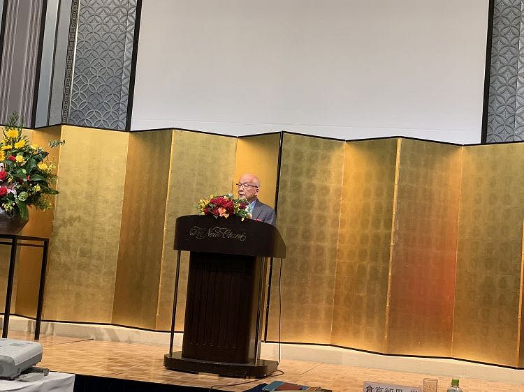第二位主题演讲者是株式会社西部技研董事长隈扶三郎,他讲演了《我们公司在中国的事业模式和今后的展望》。隈扶三郎曾经将日本的断热干燥技术带去中国,他回顾了当年在中国设立法人的经过,先是通过香港的商社而在中国投建了4个工厂,并影响了其他企业,带动经济,他还成为了常熟市荣誉市民。对于中国事业他提出了今后的目标。