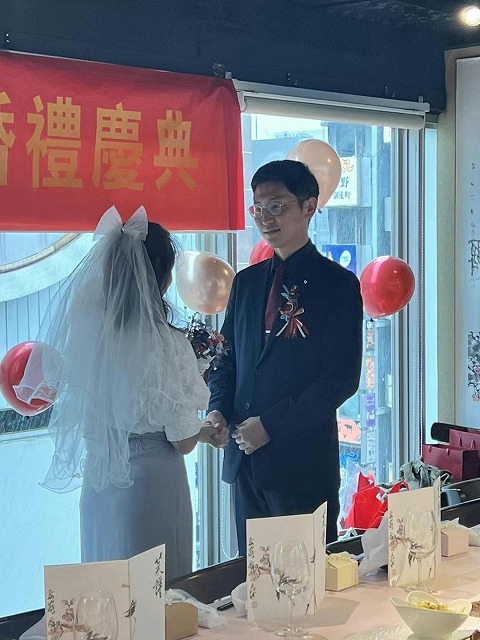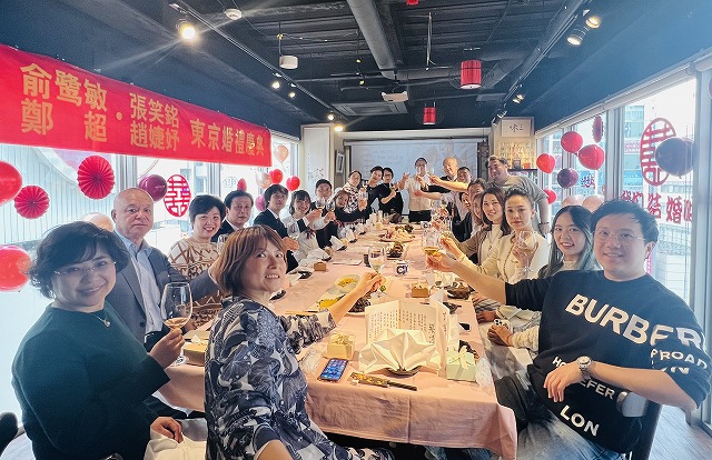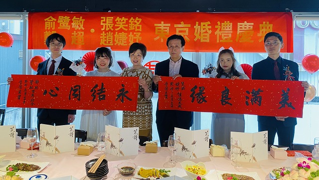 5月13日中午12时22分,在上野鼎上记中华料理店,日本晋鸥艺术学院为张笑銘·赵婕妤、俞鹭敏·郑超二对新人举办东京婚礼庆典。