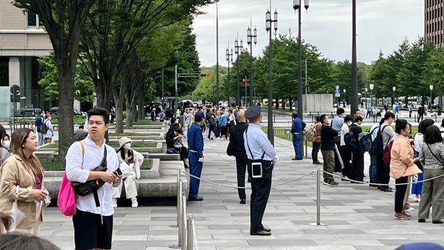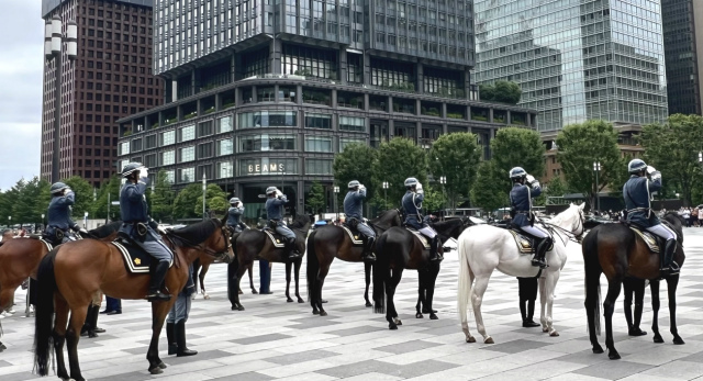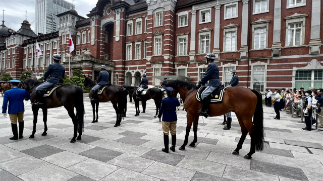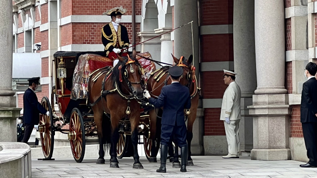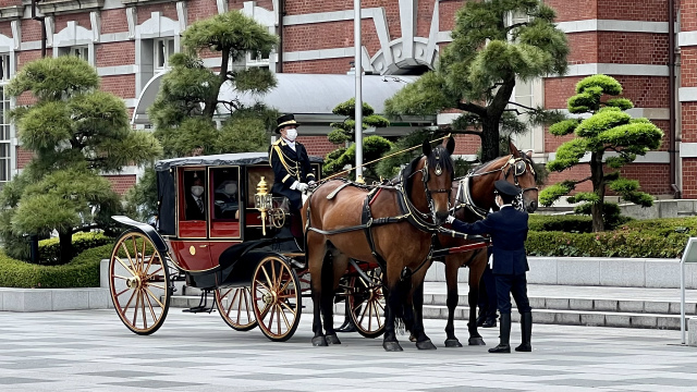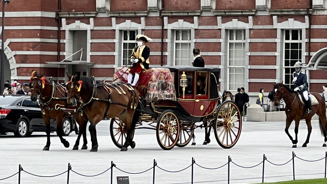 当天,东京车站前广场汇聚了众多日本国民和访日游客,还有中学生等,争相一睹大使及皇室专用马车的风采。马车列队经过时,人纷纷拍照,记录下这一难得的时刻。