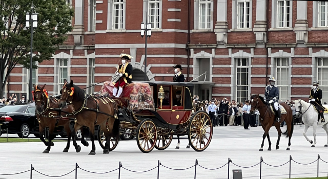 外国驻日大使乘坐皇家马车进入皇宫,履行递交国书仪式,是疫情之后时隔四年的第一次举行。2019年6月7日,中国驻日本大使孔铉佑也是乘坐皇家马车进入皇宫,向日本天皇德仁递交了国书。