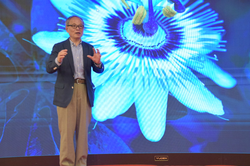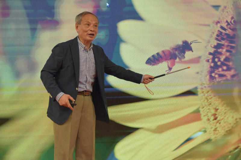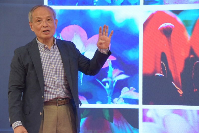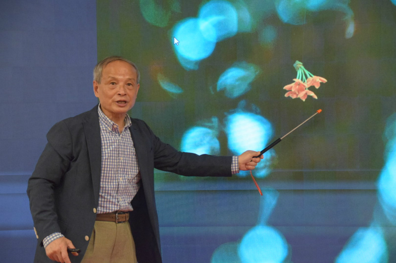 冯学敏在讲座中讲述了自己在摄影过程中的感受,为了拍摄一滴紫阳花下的雨滴,他冒着大雨在花底拍摄,为了了解各种植物的形态和表情,他多次去花店向售花人请教,为了等待一幅形成完美构图的光和影,他有时会等待四、五天,他说,我摄影的技巧基本上传统的,最重要的就是了解自然光线变化的规律。