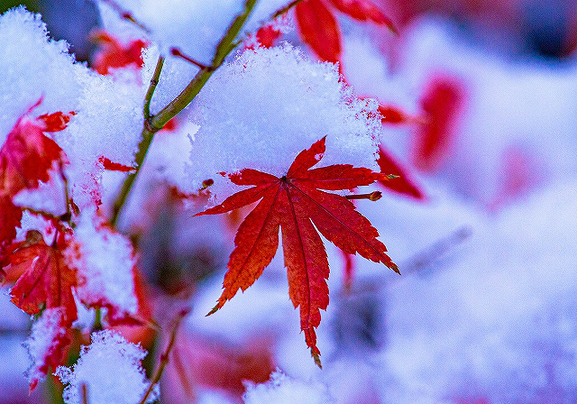 2021年的早春,还拍到了雪花飞舞中盛开的樱花。初夏新绿丛中的绣球花也是一道美丽的风景线,土壤的酸度不同花色也会有所不同,紫色居多,也叫紫阳花。少见的时钟花非常神奇,看上去花芯里有时针和分针宛如钟表。盛夏里常见的喇叭花,也是从小在故乡就熟悉的。秋天一到,金黄色的桂花芬芳,枫叶红银杏黄,百合花和菊花相继盛开。秋去冬来,枝头上火红的柿子和柑橘类果实为冬天的景色增添了色彩。在不同季节的花卉树木衬托下的民居也是各有情趣。每天散步其中享受自然,积极乐观地生活。花开花落,感受到岁月的流逝和生命的轮回;千变万化的光与影,感受到大自然的无穷魅力。散步拍摄,可调一石二鸟。疫情期间开设了微信公众号,发表了《春色满园》20辑,《散步印象》140辑,通过视觉影像和大家分享交流。
