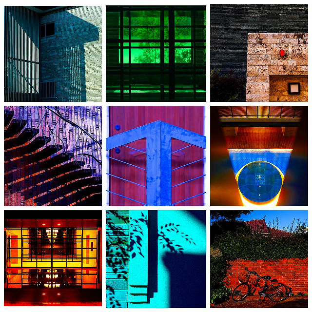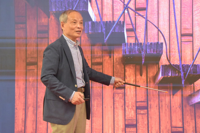 冯学敏还讲解了摄影的构图美学,如正三角形构图、倒三角构图和九宫格构图,竖的正方形跟圆对比,半圆与斜照的光影的构图等等。