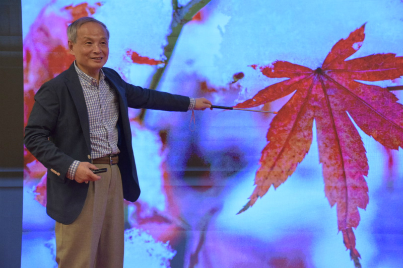冯学敏在讲座中结合自己拍摄的作品指出:春天是百花争艳的季节,而其中樱花则是日本人的最爱。樱花盛开气势磅礴,其闪开闪落的习性也是日本民族所崇敬的人生观。