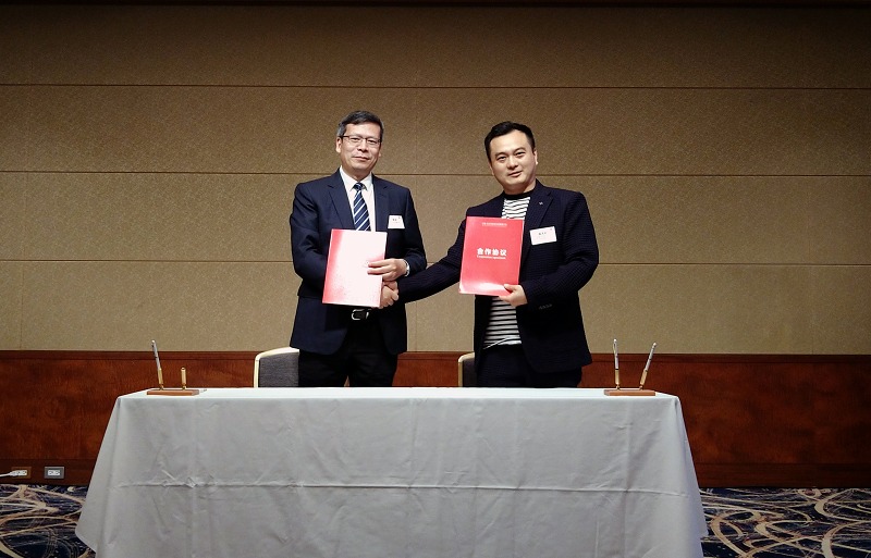 宁波市投资促进署主任 叶秀贝 与 日和商事有限公司商务代表 谷塚裕辉 举行合作项目签约仪式