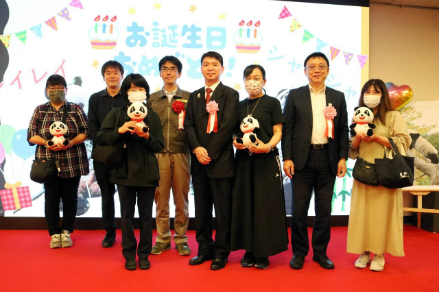 中国驻东京旅游办事处主任欧阳安、东京中国文化中心主任罗玉泉、日本东京都上野动物园代表大桥直哉、熊猫摄影家高氏贵博以及通过抽签方式得以参加的近200百名日本各地熊猫爱好者在活动现场同唱生日歌,为这对大熊猫双胞胎送上生日祝福。