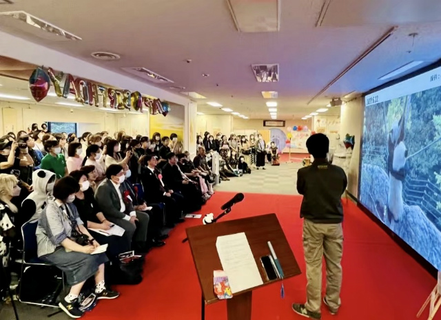 四川省文化和旅游厅专门为此次生日会寄来了精美的大熊猫纪念品和宣传品,大受现场日本熊猫爱好者的欢迎。受场地人数限制,主办方还通过线上对此次生日会进行了直播,众多无法亲临现场的日本“晓晓”“蕾蕾”粉丝纷纷在线上送上了生日祝福。