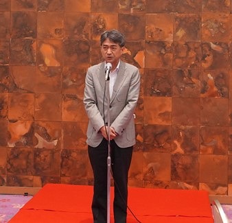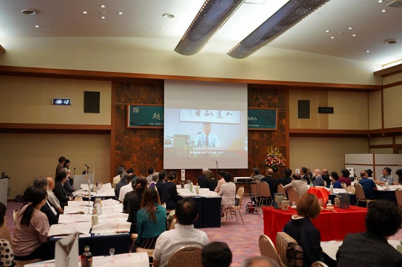 芦原市市长森之嗣因公务不能参会,他在贺词中介绍说,芦原市是温泉胜地,也是京都的后花园,明年新干线站即将开通,该市将迎来新的发展机遇。他对此次品鉴会的召开表示祝贺,并对各位的到来表示热烈欢迎,并请大家好好品味古越龙山的美酒与当地的美食。前川副市长在致辞中说,在两地结好40周年之际举办这样的品鉴会很有意义。他说,今天活动的主题是“越酒行天下”,而福井县又称“越前”,也是“越”国,感觉有种不可思议的缘分,希望让两地交流能翻开新的一页。疫情也已结束,今年将尽快重启青少年交流活动。