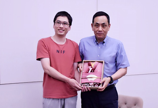 日本华文作家协会事务局长施银向田原赠送纪念品