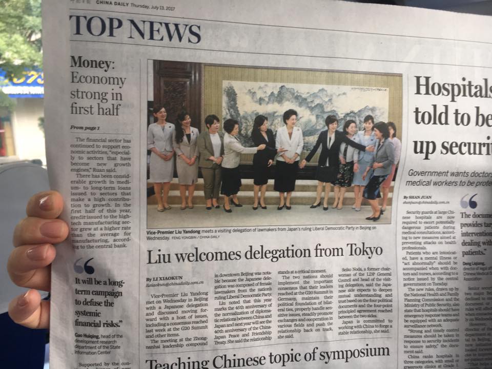 2017年7月13日《中国日报》头版。来源:加藤鲇子博客