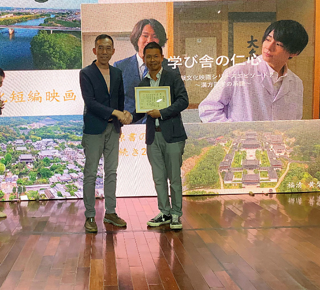 在首映式上,还安排了向这一系列影片做了捐献的日本福建长乐同乡会会长邹学德颁发感谢状的仪式。邹学德表示,作品展现了我们长乐的历史文化及中国优秀的传统文化,对我们在日华人和华童也是一份很好的爱国、爱乡的教材。