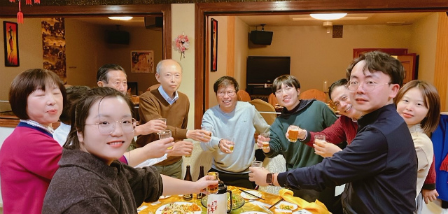 分享会结束后,大家期盼已久的2023忘年会正式开始了。刘军会长在致辞中首先对朴正均校友,王欣秘书长等从日本各地乘坐飞机或新干线等远道而来的校友们表示感谢。他说,近两三年因为疫情的影响,校友会线下的活动不多,今天在这里既见到了久违的老同学,又遇到了初次参加线下活动的新同学,感到十分高兴。今天是校友们一年一度回家聚会的日子,请大家放松心情,尽情地吃好,喝好,玩儿好,交流好。