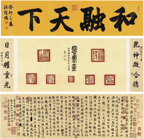汪钟鸣在致辞中说:2023年7月8日-10日,我在中国北京的故宫举办了一次书法特展,展出作品共计500余件,其中包括长卷、册页170 多件,是我半个多世纪书法生涯的一次回眸检阅,也是为我自己苦乐年华七十华诞一份特殊贺礼!当时心中百感交集,感概万千。