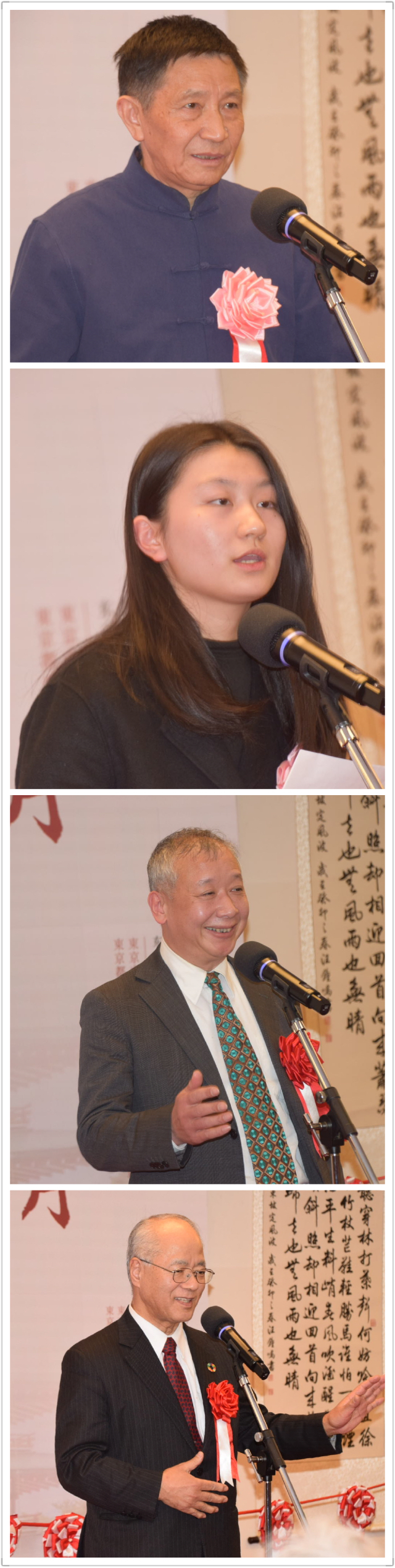 日中友好协会常务理事永田哲二、世界华人协会代表今村政纯、全日本华人书法家协会会长高小飞、中国留日同学总会理事长汪先恩也先后在开幕式上致辞表示祝贺。