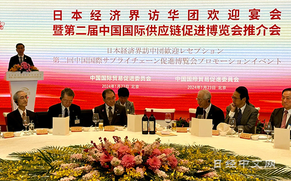 在23日的欢迎宴会上,中国国际贸易促进委员会会长任鸿斌强调,中日经济能通过相互合作将蛋糕做得更大,相信中日经贸合作将迈上新台阶。担任团长的日中经协会长进藤孝生(日本制铁董事长)回应称:“希望从经济交流的层面为进一步发展两国关系提供支持。”