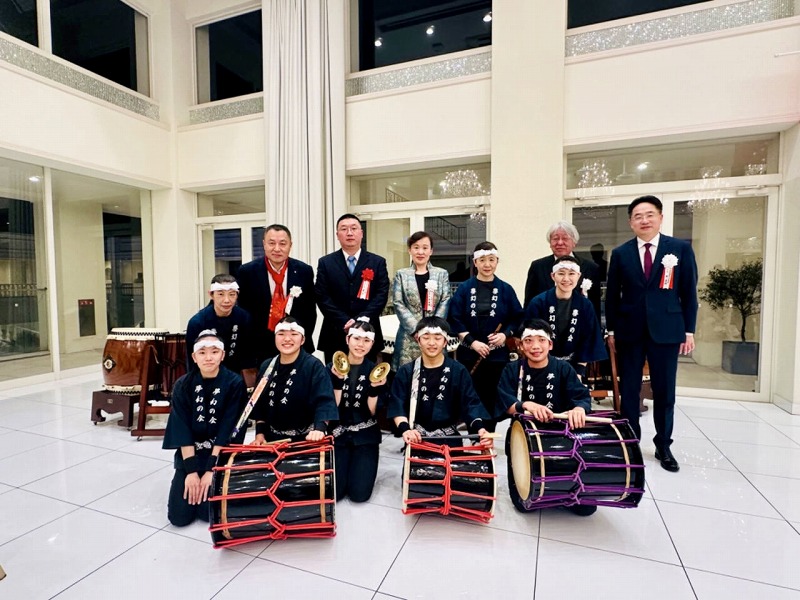 欢快的气氛一直延续至晚间的庆祝活动,与会者畅怀交流,共同欣赏了由日本当地艺术团体呈现的日本古筝、长笛和单簧管的精彩演奏。最后,在香川县乃至日本全国知名的和太鼓集团“梦幻之会”的和太鼓表演,将庆祝活动推向了高潮,所有人都被其震撼所打动。这些丰富多彩的节目使大家度过了一个美好而难忘的一天。