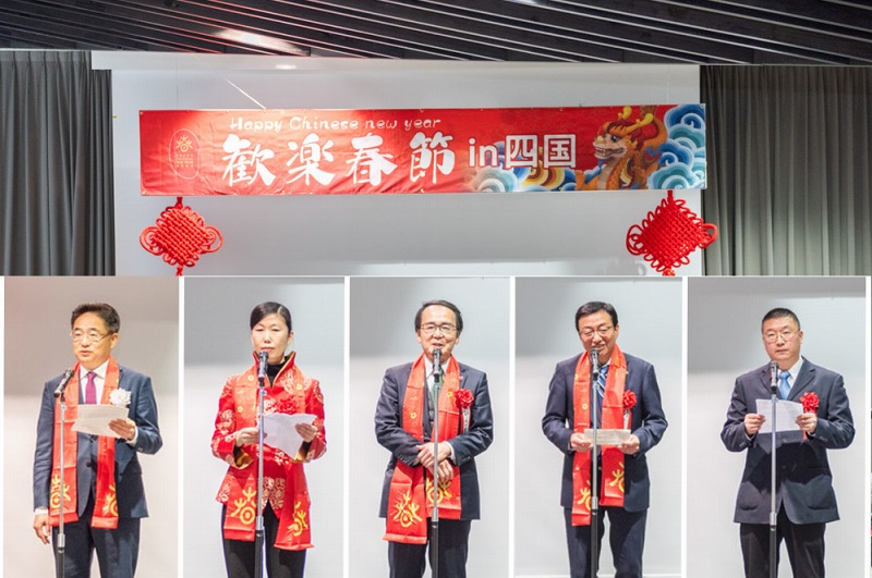 中文导报讯 1月27日,“欢乐春节走进四国”在日本香川国际交流会馆欢乐举办。精彩纷呈的文艺表演、中国传统文化的展示、春节特色美食的品尝体验,给香川县市民送上了中国春节的吉祥与祝福。中国驻大阪副总领事魏有美、 香川县知事池田豊人、高松市市长大西秀人、南昌市外办科长娄芳、中国驻大阪旅游办事处主任马晓琛、高松市日中友好协会会长佃昌道、一般社团法人四国华侨华人联合会会长张嘉树等中日嘉宾参加了活动并致辞,向现场观众送上春节祝福。