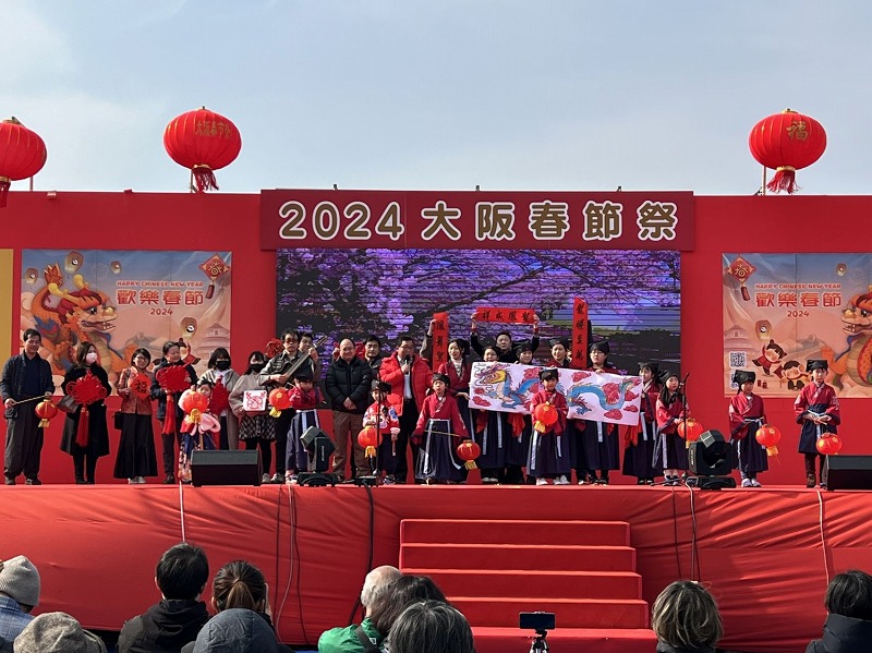 2月12日下午4:30大阪春节祭闭幕,大阪府议会议员中野稔子致闭幕词,期待大阪春节祭越办越好,明年继续。大阪春节祭执行副委员长齐振宇宣布“2024大阪春节祭正式闭幕”,中国驻大阪总领馆领侨处段海红主任大阪春节祭执行委员长张永胜及数十位华侨华人代表企业代表组委会成员出席闭幕式。本届大阪春节祭有500多名演出人员参加3天演出活动,其中有来自国内成都的艺术团体与来自湖北武昌理工学院艺术代表团等20余名专业演员专程赶来参加春节祭的演出。本届大阪春节祭的总导演是刘伟。
