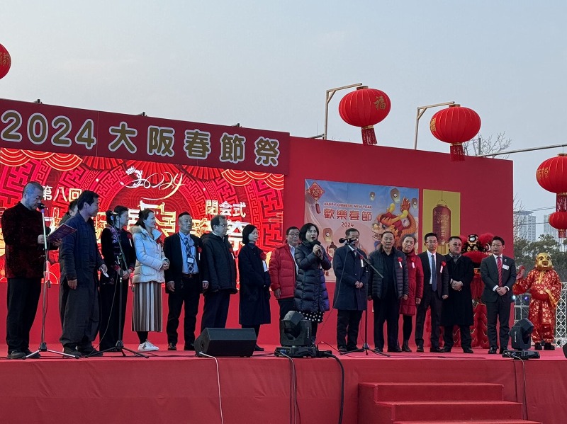 正如2月9日大阪春节祭组委会执行委员长张永胜在开幕式致辞讲到“打造国际化,魅力无限的大阪”各大媒体都助力推进。中国驻大阪总领事薛剑出席开幕式并致辞“从三个角度出发看春节,号召通过春节促进国际交流与友好合作,同时在春节期间向西日本馆区的广大华侨同胞,华人及日本友人致以新春祝福”当天薛总领事身着中国红色唐装,给会场带来春节氛围,在开幕式以后给各出摊商家拜年并致以祝贺、赠送小礼品,并于演员共同跳起来了舞蹈,与大家欢度春节。中国驻大阪观光代表处马晓琛首席代表,大阪选出的部分众参议员及代理,府市会议员,地方议员30多民及近百位华侨华人代表、日本知名企业家出席开幕式,部分府会议员,市会议员及滋贺县议员知名企业家、中国华侨华人代表上台剪彩。大阪知名企业家(景点运动集团总裁)也是著名演员的柴山胜也先生上台致辞,祝贺春节快乐。