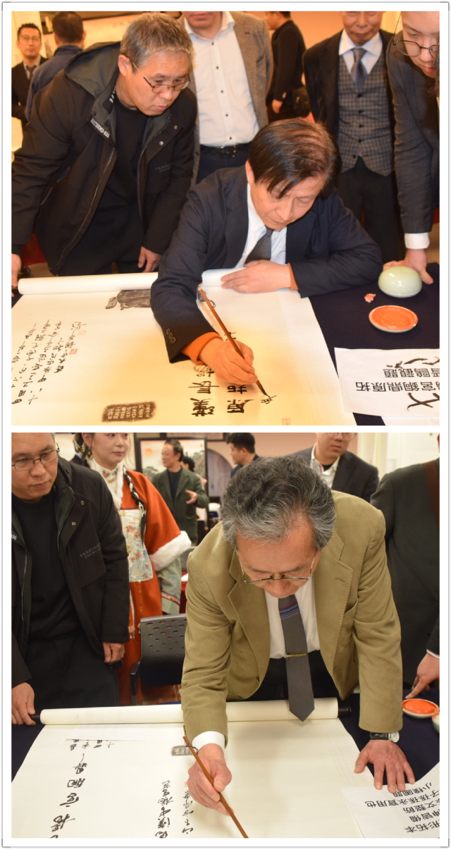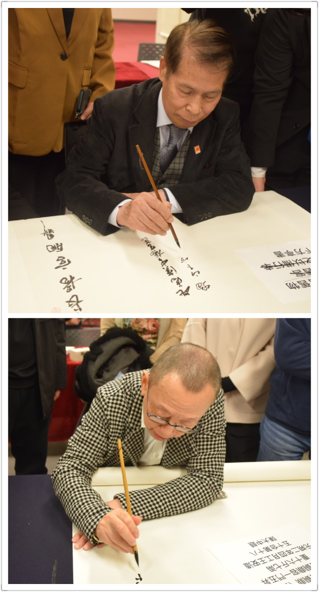 开幕式学术交流会上,西泠印社理事日本华人文联主席晋鸥、杭州金石全形拓非遗保护发展中心理事长赵军、东京中国文化中心主任罗玉泉、全日本华侨华人社团联合会副理事长林立、西泠印社名誉理事、日本篆刻家协会原理事长山下方亭、中国美术学院书记系教授陈大中在学术交流会上致辞发言,日中协会理事长瀬野清水、西泠印社名誉社员副理事长小朴圃、乐篆杂志社长三井雅博、东京印社社长、白圭社社长小坂克子、日本华人摄影家协会会长冯学敏、东洋大学副教授川内佐毅、全日本华人书法家协会主席高小飞、中国代表团代表杭州金石全形拓会保护发展中心副主任兼印谱研究所所长冯弼元等到会祝贺。