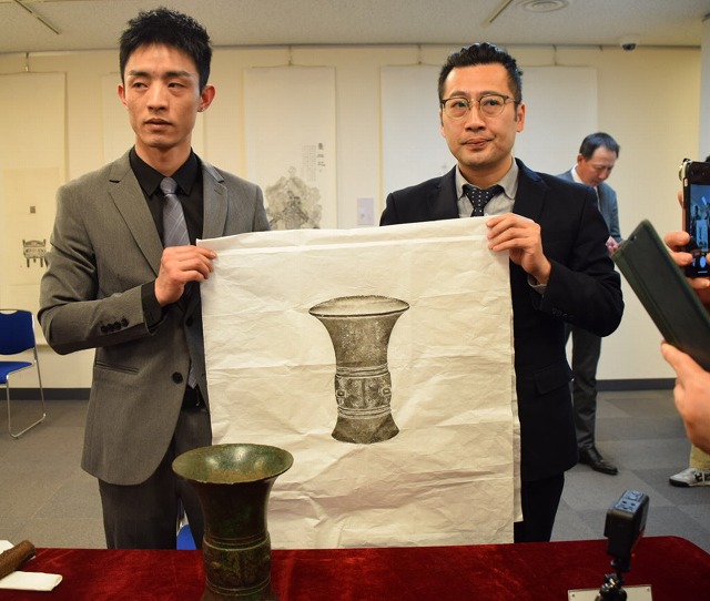 晋鸥在学术交流会上介绍了此次艺术交流展的准备过程和意义,对与会者致以春节的问候,并对远道而来的中国相关人士表示感谢。赵军在学术交流会上介绍了全形拓与金石学及画学的关系,并谈了自己来日本以后与日本艺术界人士进行交流的体验,并表示作为浙江省级非遗传承人,希望在日本用全形拓这一具有深远历史渊源的艺术形式,与日本各界展开全新的交流。林立对于这次艺术交流展的成功举办表示衷心的祝贺,并希望全形拓艺术超越国界,和日本艺术界等展开广泛的交流。罗玉泉在致辞中表示,去年,由西泠印社美术馆、杭州金石全形拓非遗保护发展中心、福建省文学艺术对外中心、日本华人文联共同举办“襟吴带泠——中日篆刻·印钮雕刻交流展”在东京中国文化中心举行,那次展览具有很大的艺术冲击力,而这次的“无形文化遗产——中国全形拓国际艺术交流展”,在平面的纸张上表现出的立体造型美更令人耳目一新,也对这样具有如此文化与艺术魅力的展览能在中国文化中心举行表示感谢。山下方亭介绍了日本研究和收藏中国远古青铜器等的状况,也介绍了自己与全形拓艺术家赵军的交往及参观赵军收藏的古文物的感想,陈大中介绍全形拓的历史价值和现在的市场价值,并讲述了自己收藏全形拓的经历。