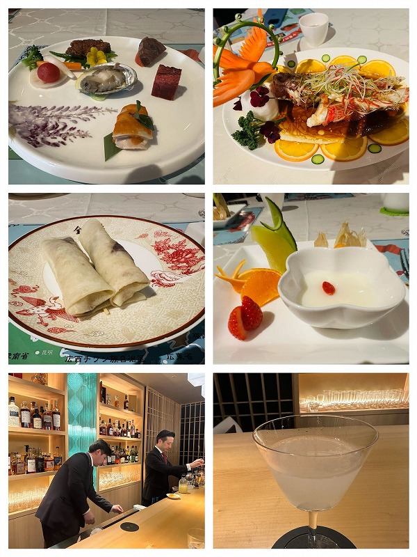 全聚德六本木店的部分菜肴和店内的梦幻酒吧。由鸡尾酒大赛金奖获得者担任调酒师。