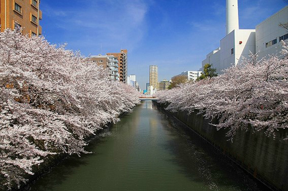 目黑川流经世田谷区、目黑区、品川区,流入东京湾。从中目黑站上游,樱花形成拱形图案,从左到右覆盖河流。目黑川沿岸约800株樱花在目黑川两岸方圆3.8公里左右的范围内盛开。虽然那里没有大型公园,但可以悠闲地沿着河边散步。 染井吉野、里樱和垂樱等争奇斗艳。 从大桥到下目黑,春天樱花盛开,游客络绎不绝。 目黑川沿岸也排列着各具特色的店铺,许多人边赏樱花边购物,也有很多饭店餐馆,美味佳肴供游人品尝。