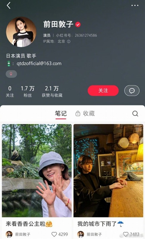 文章来源于互联网:日本女艺人前田敦子现身四川探望大熊猫香香