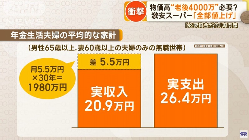 这一推算在2019年引起了社会的广泛讨论,被大家简称为“老后2000万”。然而进入2020年代,随着日元贬值、物价不断飙升,人们开始质疑2000万日元是否真的够老后生活。