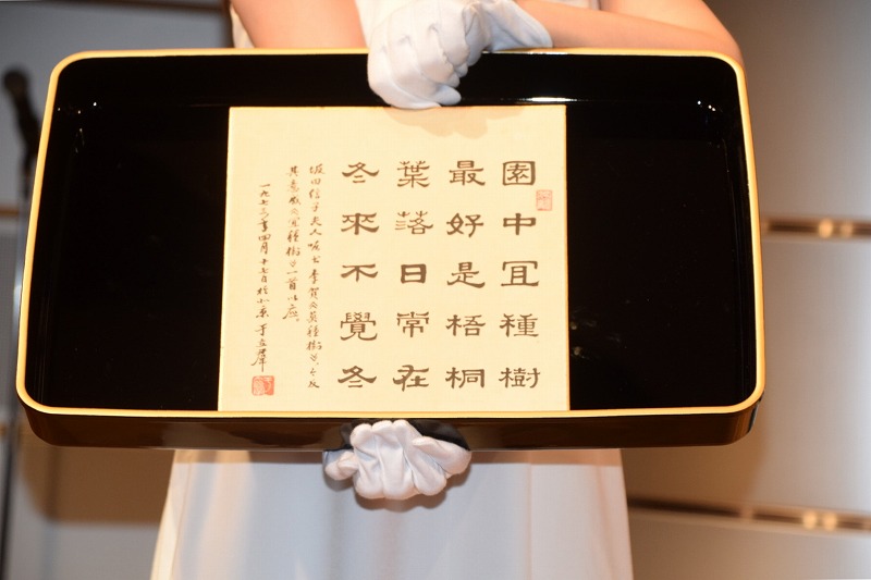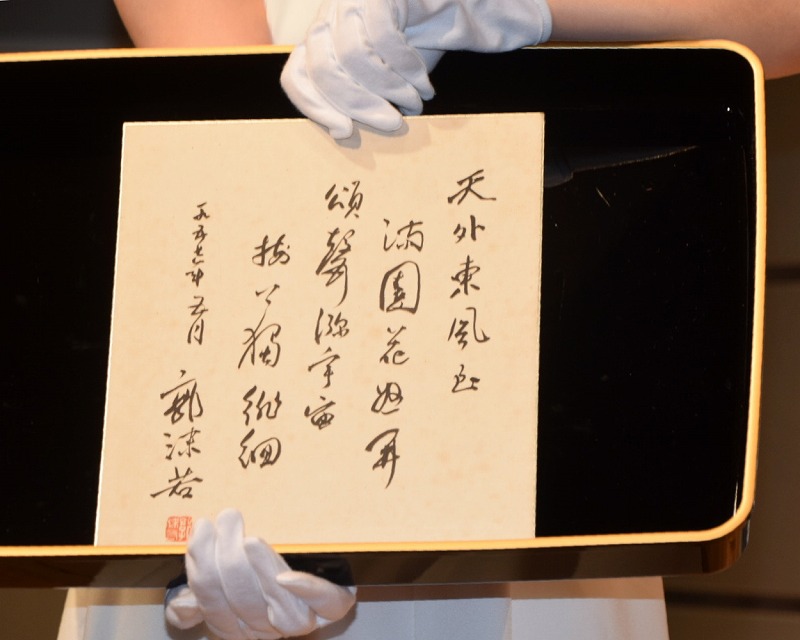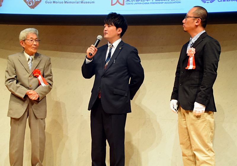 在捐献仪式上,日方主办方,东京都日中友好协会的理事长伊藤洋平、赴日参加捐献仪式的中国社会科学院古代史研究所一行、日中友好会館中国代表黄星原、坂田昌一之子坂田文彦、郭沫若外孙女、国士馆大学教授藤田梨那、中日交流论坛名誉会长张可喜等参加了捐献仪式。