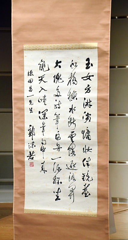 今天,我带来了郭沫若、于立群夫妇的书法作品,这是中国郭氏家族与日本坂田家族友谊的见证,为了让此见证今后永久传承,我决定将此作品捐赠给郭沫若纪念馆。希望能长期保存。