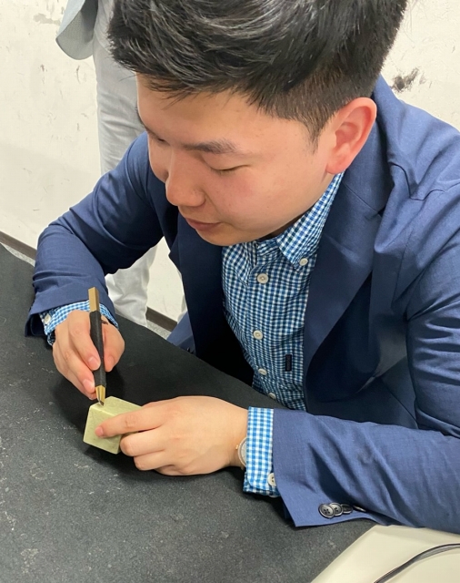 2024年5月29日, 继续在东京神田荣丰斋,开讲第三天的课程,在日西泠印社社员ー吕军老师,带来了《印章边款的制作与採拓方法》的讲课内容。