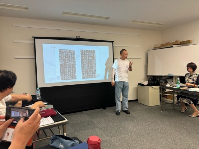 2024年5月30日, 继续在东京神田荣丰斋开讲第四天的课程。中国美术学院教授、博士研究生导师、西泠印社理事陈大中老师登坛讲课。