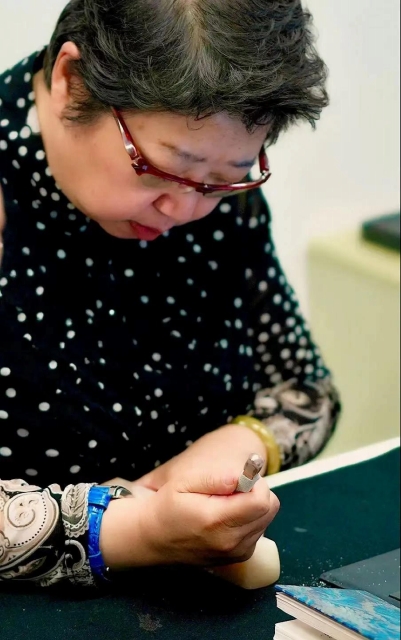 最后,在学员们的期肦注目之中,现场演示了印章边款的制作与採拓方法。与学员们进行互动交流后,结束了《印章边款的制作与採拓方法》课程。