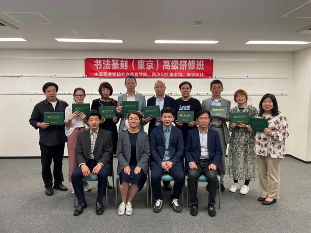 全部课程结束后由中国美术学院高级研修中心副主任为各位参加高级研修班的学员颁发结业证书并合影留念。来自中国美术学院高级研修中心微信公号《国际研学:书法篆刻艺术高研班(东京)课堂纪实》