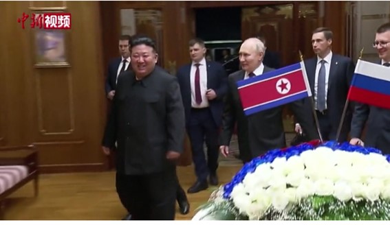 中文导报讯 访问朝鲜的俄罗斯总统普京与朝鲜劳动党总书记金正恩19日签署包括互相进行军事支援的《全面战略伙伴关系条约》,朝鲜公开了两国新条约的全文,条约写明:如果其中一方处于战争状态,另一方将提供军事援助,明确了两国的军事合作关系的进一步加强。