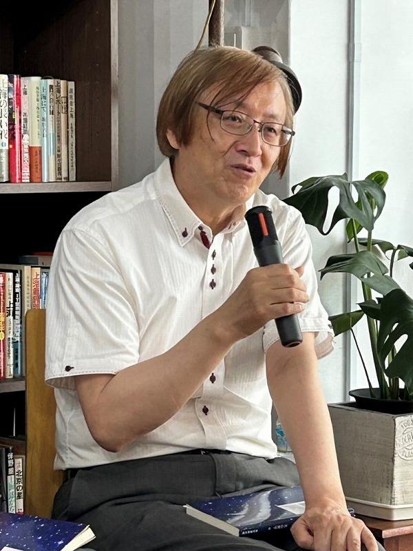近日,东京书房出版社出版了作家元山里子最新长篇小说《星星遇见月亮》。7月14日,这本书的第二场分享会在东京神保町局外人书店举行。当天恰逢日本公众假日“海之日”。与盛夏非常吻合的小说名《星星遇见月亮》,配布蓝色封面,星光点点,给读者带来几分凉爽与浪漫。
