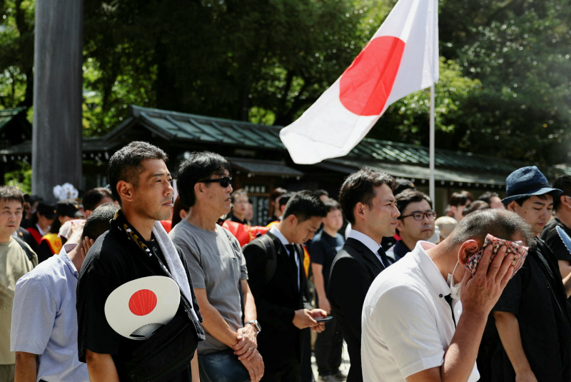 今年的815当天,防卫大臣木原稔、经济振兴大臣新藤义孝、经济安全保障大臣高市早苗等阁僚参拜靖国神社。自2020年以来,现任内阁大臣连续第五年在日本战败之日参拜靖国神社。当天,被认为有可能竞选下届自民党总裁的前环境大臣小泉进次郎和前经济安全保障大臣小林隆之也加入了参拜队伍。