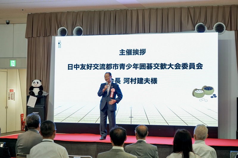 河村会长致辞中,提到次活动除了纪念大阪市和上海市友好城市缔结50周年之外。另外今年还是中日围棋外交65周年,同时也是第一届中国少年围棋团访问日本45周年及中日围棋擂台赛40周年,是中日围棋交流特别值得纪念的节点,希望通过青少年围棋交流及明年万博会的连接,开创日中未来合作的新局面。
