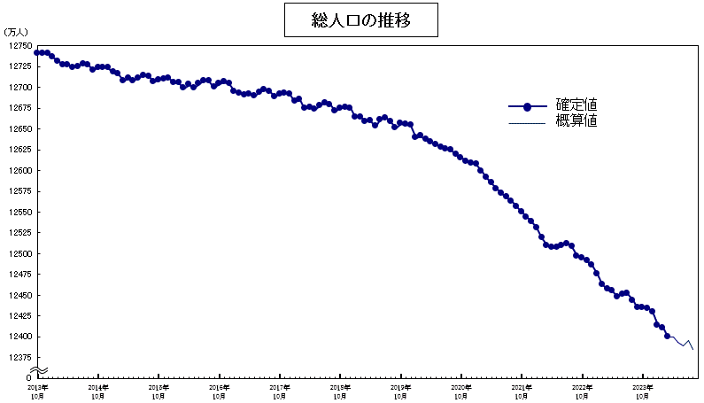 1.24亿人 3,000人,比去年同月减少56.5万人(0.45%)。