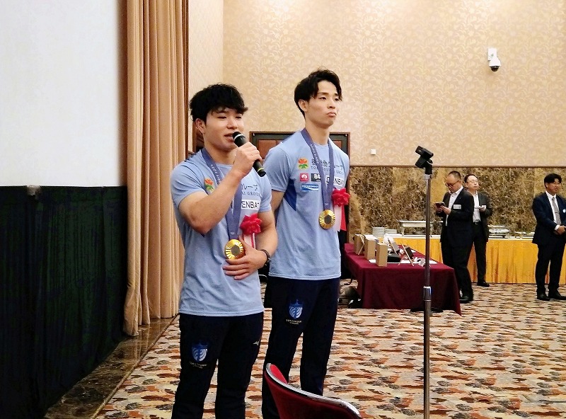 当天,DENBA JAPAN株式会社社长后藤锦隆、SBI Investment株式会社副社长后藤健、日本体操选手冈慎之助与其教练米田功和队友杉野正尧、伊藤忠商事株式会社船舶海洋部部长尾关洋彦、DENBA JAPAN株式会社副社长今村龙男、中日两国商界人士以及媒体等约百名嘉宾参会。